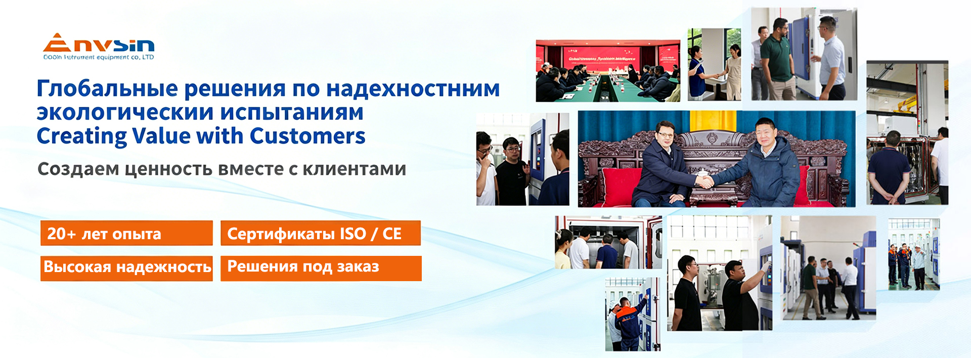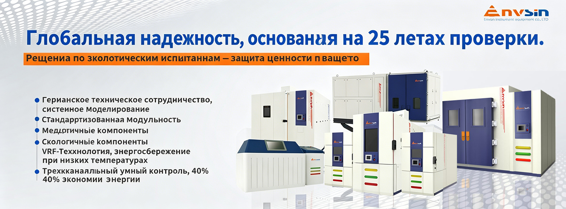 Компания Envsin предоставляет передовые испытательные камеры для широкого спектра отраслей промышленности. В частности, для автомобильной и аэрокосмической промышленности, электроники, новой энергетики и материаловедения. Наши стандартные и индивидуальные решения сочетают в себе точность проектирования, надежность работы и строгое соответствие международным стандартам испытаний, таким как IEC, ASTM, ISO и MIL-STD. Наша опытная команда инженеров работает в тесном сотрудничестве с вами, чтобы подобрать подходящую испытательную систему, отвечающую вашим конкретным требованиям требованиям и отраслевым спецификациям.
